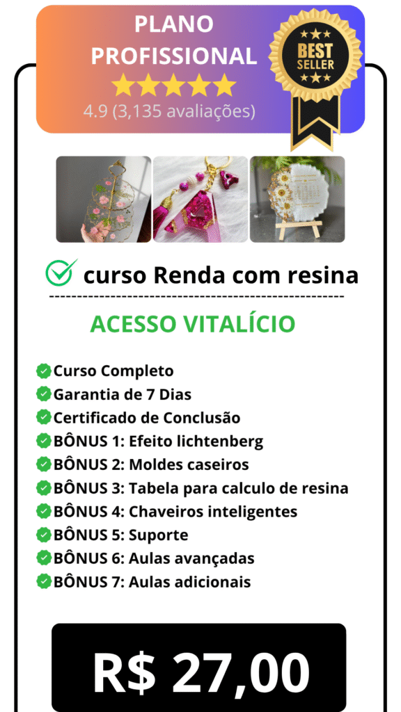 Sim! Você não precisa de experiência para começar. Nosso curso foi feito exatamente para quem nunca fez resina. Com poucos passos e materiais simples, você consegue criar peças incríveis mesmo se tiver pouco tempo. A prática vai te dar confiança rápido e você vai ver resultado logo na primeira peça.