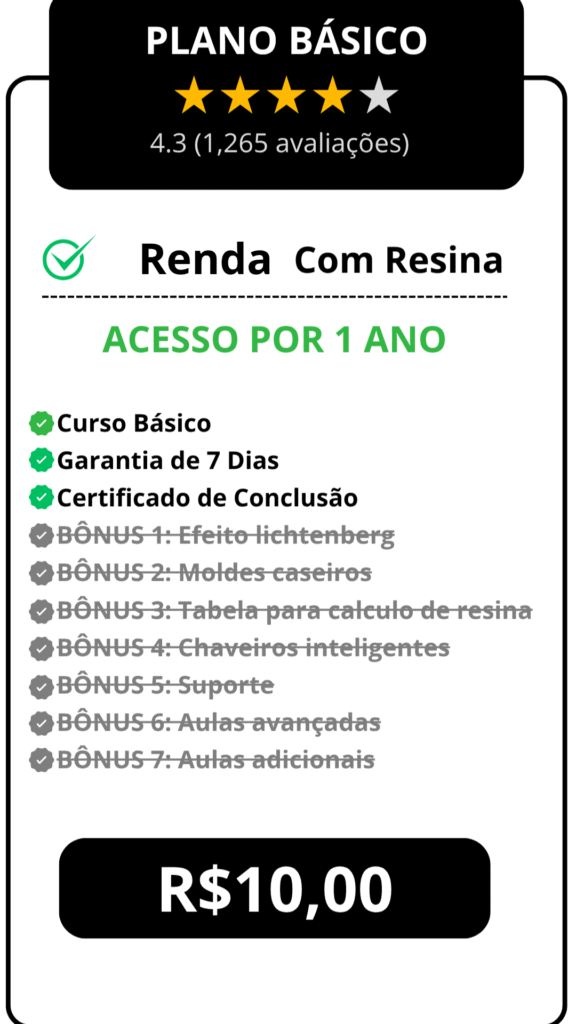 Eu trabalho o dia todo e só tinha alguns minutos por noite, mas mesmo assim comecei a ganhar uma graninha extra com minhas peças de resina. Super recomendo!