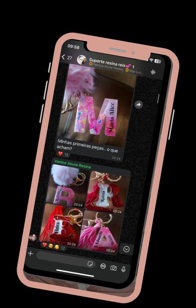 Eu nunca mexi com resina antes e agora já tenho clientes pedindo encomendas. É muito mais fácil do que eu imaginava!”